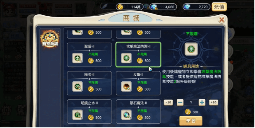 - 訓練與裝備: 透過「寵物訓練」可隨機提升屬性(不滿意可刷新)。高階寵物可穿戴四件裝備提升精神與敏捷,並支援跨職業技能學習(最多 10 個),打造專屬戰寵。